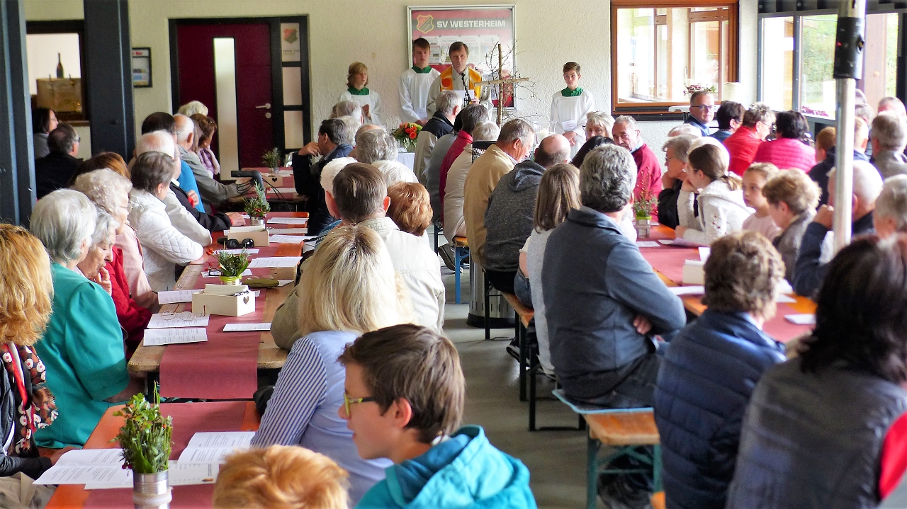 Nachdem die letzten Tage schon die frühwinterliche Kälte den Einzug gehalten hatte gab am Sonntag den 22.10.2019 nochmal einen herrlich schönen Tag in Westerheim zum Schlachtfest des SV Westerheim. Der Auftakt bildete dabei der Ökumenische Gottesdienst von Herr Pfarrer Enderle. Dabei wurden alle Besucher nicht nur mit dem Motto „aufstehn, aufeinander zugehen, miteinander umzugehen, füreinander da zu sein“ daran erinnert wie wichtig für jede Person eine stabile Gemeinschaft ist, welche einem den notwenigen Halt gibt. Begleitet wurde der Gottesdienst von der Band Tarsus. Im Anschluss folgte die Segnung des frisch sanierten Sportplatzes. Die Sanierung maßgeblich hat einiges an Zeit, Kraft und Aufwendungen gekostet, aber nun können die Fußballer des SVW wieder den Platz bespielen.