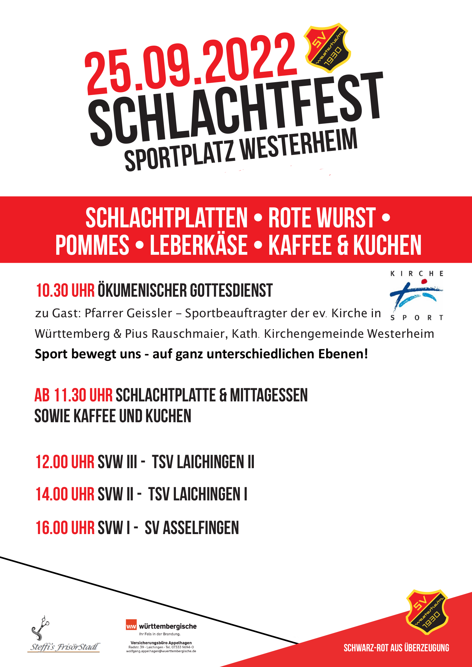 Auf diesem Wege möchten wir Alle aus der Gemeinde Westerheim und die umliegenden SVW Anhänger Einladen zu unserem Gottesdienst Kirche und Sport.