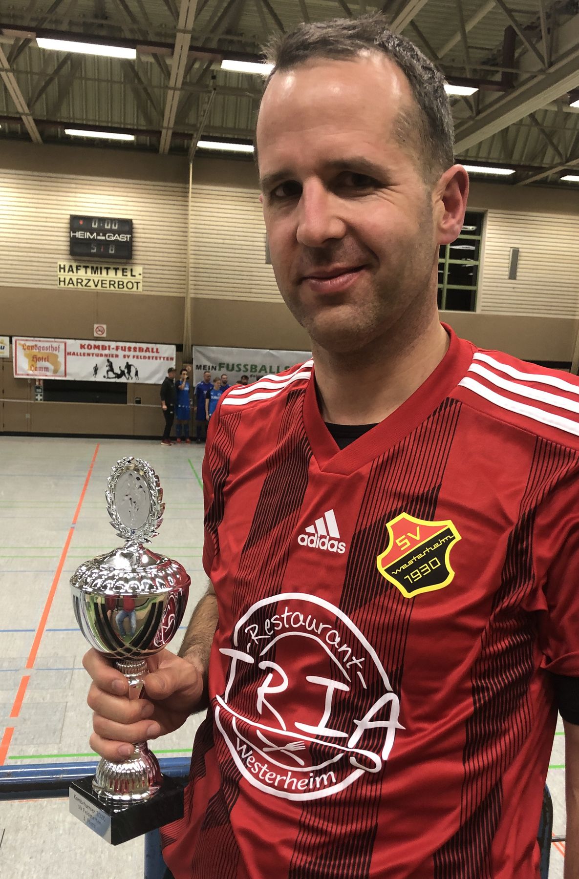 Der SVW nahm also den Pokal für den 3. Platz mit nach Hause und dieser wurde anschließend noch beim Hauptsponsor der AH, der Gaststätte Tria, ins Regal gestellt.