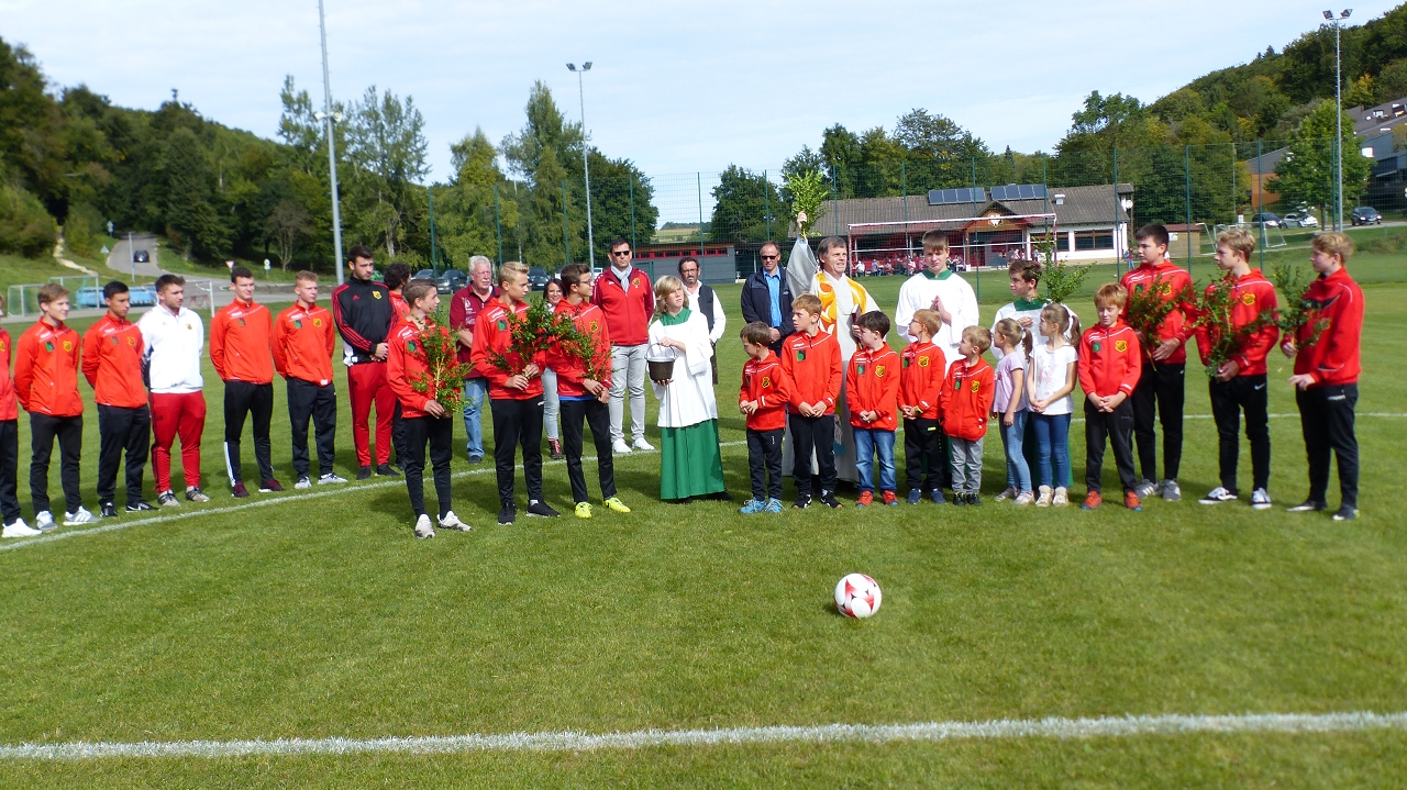 Nachdem die letzten Tage schon die frühwinterliche Kälte den Einzug gehalten hatte gab am Sonntag den 22.10.2019 nochmal einen herrlich schönen Tag in Westerheim zum Schlachtfest des SV Westerheim. Der Auftakt bildete dabei der Ökumenische Gottesdienst von Herr Pfarrer Enderle. Dabei wurden alle Besucher nicht nur mit dem Motto „aufstehn, aufeinander zugehen, miteinander umzugehen, füreinander da zu sein“ daran erinnert wie wichtig für jede Person eine stabile Gemeinschaft ist, welche einem den notwenigen Halt gibt. Begleitet wurde der Gottesdienst von der Band Tarsus. Im Anschluss folgte die Segnung des frisch sanierten Sportplatzes. Die Sanierung maßgeblich hat einiges an Zeit, Kraft und Aufwendungen gekostet, aber nun können die Fußballer des SVW wieder den Platz bespielen.