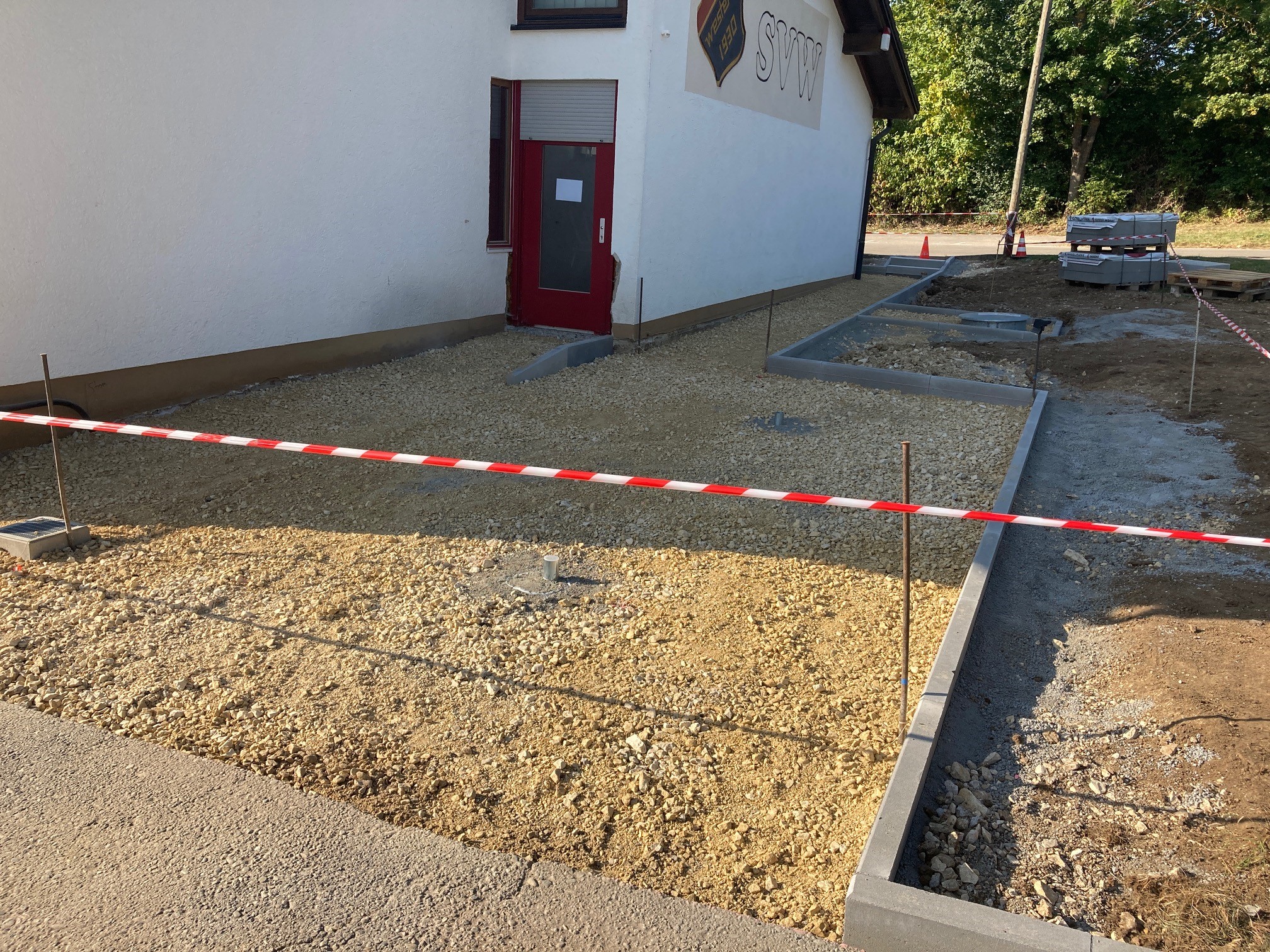 [Howie] Wieder einmal hat der SVW ein Bauprojekt am Laufen. Gestartet wurde eigentlich „nur“ mit dem Einbau einer neuen Heizung. Der Gas Tank wurde im Boden vergraben. Aber der SVW hat daraus ein etwas größeres Projekt gemacht. Unter der Leitung von Wolfgang Uhlmann entsteht aktuell eine Terrasse, bei dem auch an die Rohre zum Aufbau der Sonnenschirme gedacht wurde. Zudem wird dadurch der Eintritt ins Sportheim barrierefrei möglich sein.