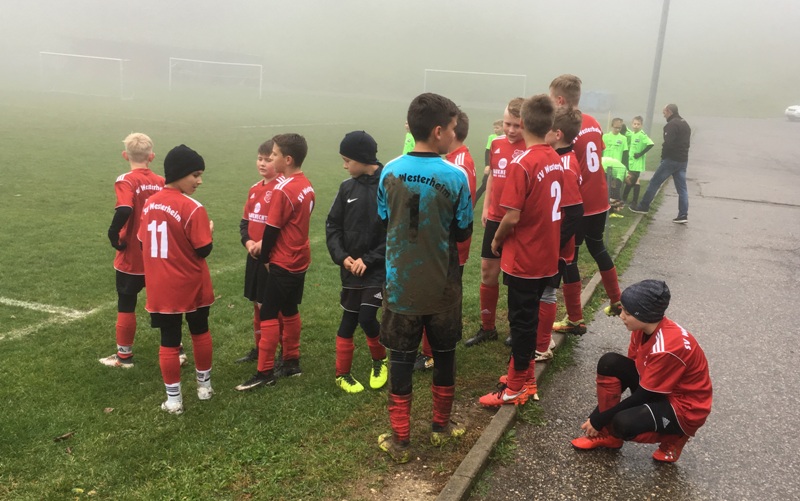 Nach der unglücklichen Niederlagen bei der SGM Herrlingen war die Mannschaft um die Trainer Udo Buck und Karl Bauerschafter gut eingestellt und versuchten von Beginn an das Spiel zu kontrollieren, was bei den Platzverhältnissen nicht ganz leicht fiel. Die erste kleinere Chance hatten dennoch die Gäste in der 3. Minute. Dann kamen unsere Jungs zu zahlreichen Chancen. In der 5. Minute war es Ron durch einen Fernschuss den der Torwart noch abwehren konnte. In der 10. Minute ein Fernschuß von Nino von der Mittellinie!!! der aber auch das Tor verfehlte. Jetzt war der SVW klar am Drücker und hätte in der 15. Minute die Führung verdient. Ron konnte sich auf der linken Seite durchsetzen und die Hereingabe von der Grundlinie konnte der gegnerische Torwart gerade noch vor dem einschussbereiten Noel abfangen.Fast im Gegenzug dann das überraschende und glückliche 0:1 für den Gast. Nach einer Hereingabe von Links an die Strafraumlinie rutschte der Ball auf dem glitschigen Boden an den Abwehrspielern und am herauslaufenden Torwart vorbei und landete direkt vor den Füssen des SGM Stürmers, der den Ball nur noch einschieben musste. Die Mannschaft des SVW ließ die Köpfe nicht hängen und spielte unvermindert weiter und hatte in der 18. Minute dann nach einem Eckball und Verwirrung im gegnerischen Strafraum Pech, dass der Abpraller der bei Noel vor die Füße fiel nur am Pfosten landete. In der 22. Minute dann das erlösende 1:1 der SVW konnte sich im Mittelfeld durchsetzen, der Ball landete bei Noel, im Strafraum, der uneigennützig querlegte und Ron zum 1:1 einschieben konnte. Bereits in der 25. Minute die nächste Großchance. Nach einem herrlichen Steilpass von Niklas aus der Abwehr auf Ron konnte dieser allein auf den Torwart zulaufen, sein Schuss ging aber knapp am langen Pfosten vorbei. Auch die letzte Chance in der 1 Halbzeit hatte der SVW, wieder setzte sich Ron auf der linken Seite durch, seine Hereingabe konnte jedoch nicht verwertet werden.