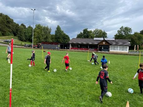 (MaRa) Nach dem Saisonabschluss mit den F-Junioren, ging es für die Kids vergangenen Montag gleich mit dem ersten Training bei den E2-Junioren weiter. Am darauffolgenden Wochenende fand ein zweitägiges Trainingslager auf heimischen Platz statt. Freitagmittag starteten die Fußballer mit dem ersten Training. Nach einem kurzen Snack mit Obst und Kuchen stand auch schon die zweite Einheit des Tages am Abend auf dem Programm. Danach gab es dann zum Abendessen leckere Hamburger zum selber belegen. Ausgepowert verbrachten die Kicker die Nacht in heimischen Betten. Am Samstagmorgen ging es pünktlich um 10Uhr weiter mit der nächsten Trainingseinheit. Danach wurden die Truppe wieder lecker bekocht mit Spaghetti Bolognese und Spaghetti Napoli.