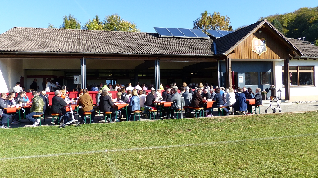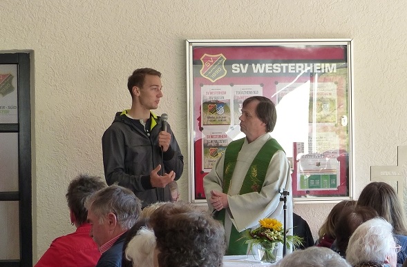 Am 30. September feierte der SV Westerheim sein alljährliches Schlachtfest. Dabei konnten die vielzähligen Gäste neben der üblichen Schlachtplatte, Bier, Kaffee und Kuchen eine ganze Menge Sport genießen. Zum Auftakt startete die Veranstaltung mit einem ökumenischen Gottesdienst mit Pfarrerin Hohenstein und Pfarrer Enderle. Dort stellte sich Daniel Bohnacker den Fragen unseres Pfarrers. Er erzählte, dass seine Familie, Freunde und seine Heimat Westerheim wiederholt nach Rückschlägen hinter ihm stehen und ihn aufbauen. Obwohl er eher der seltene Kirchgänger ist, glaube er durchaus „an eine höhere Kraft“ und auch dass der Weg von jemandem vorbestimmt ist.